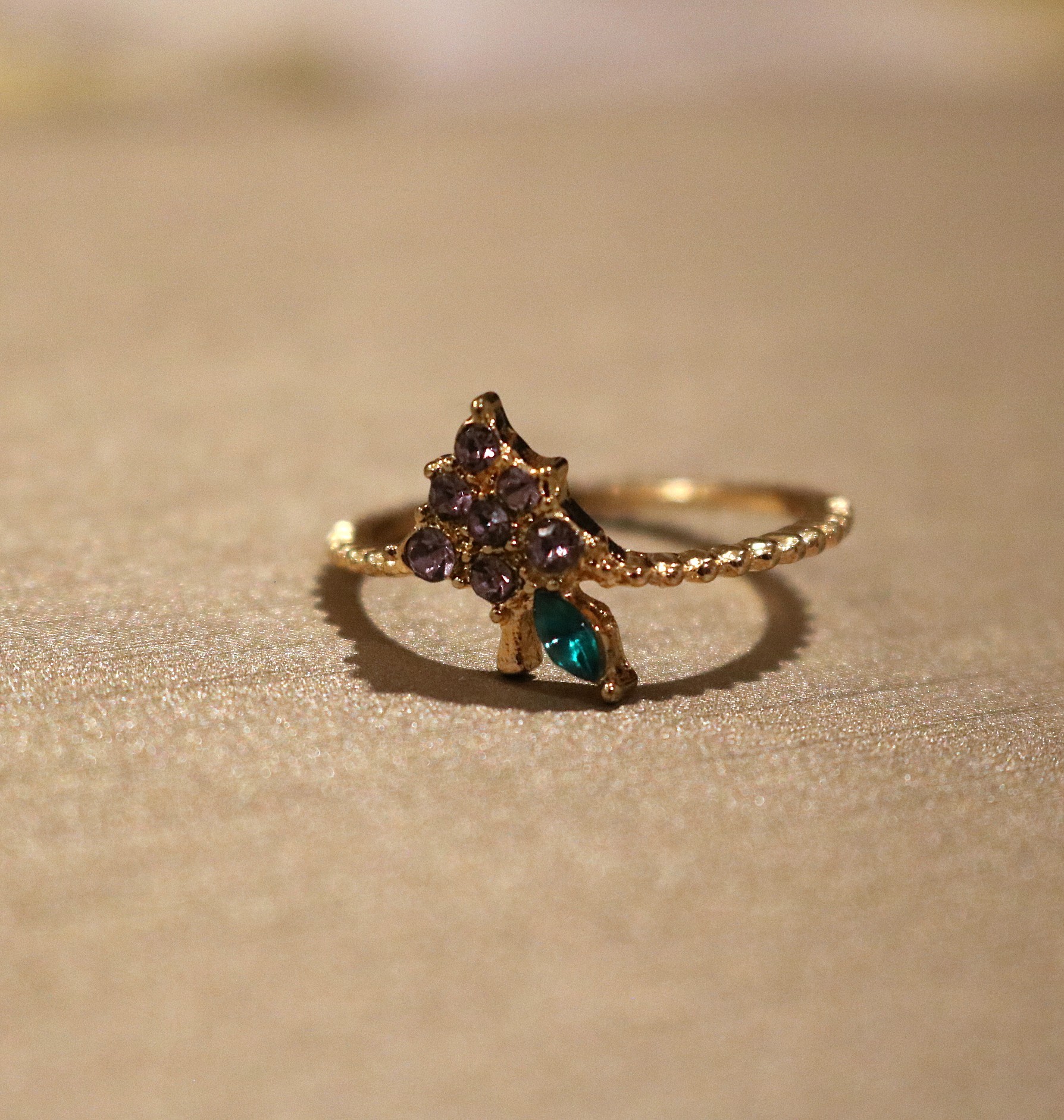 Stainless steel grape inspired gold-plated fashion ring size 6.